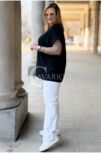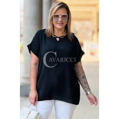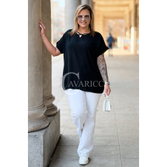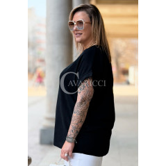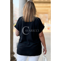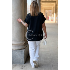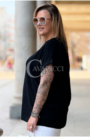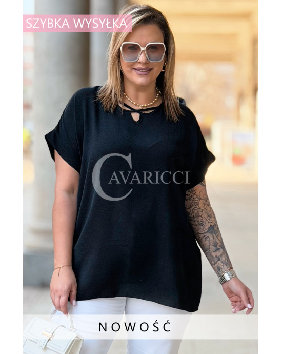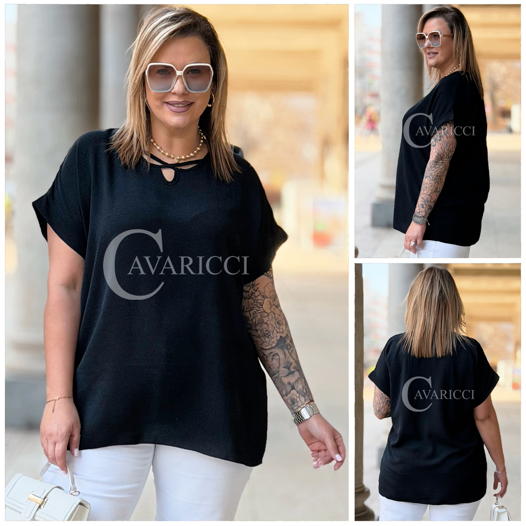 VANELLA - lekka bluzka z ozdobnym dekoltem w kolorze czarnym