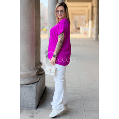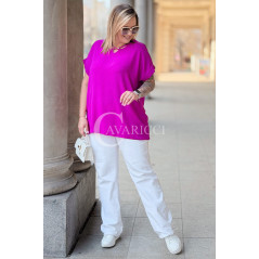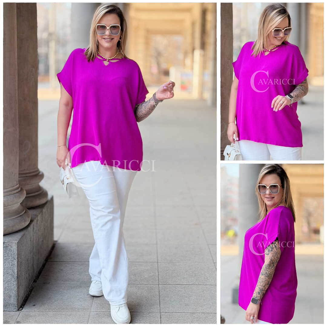 VANELLA - lekka bluzka z ozdobnym dekoltem w kolorze fuksji