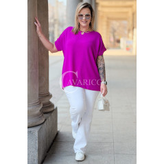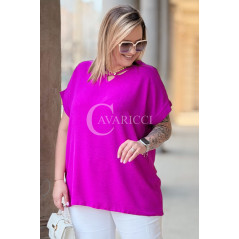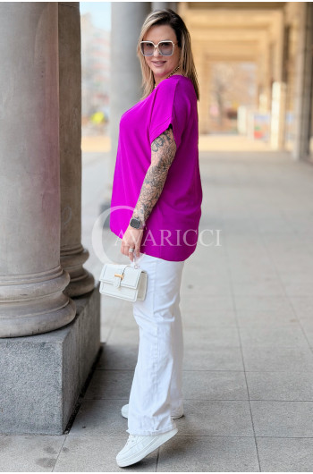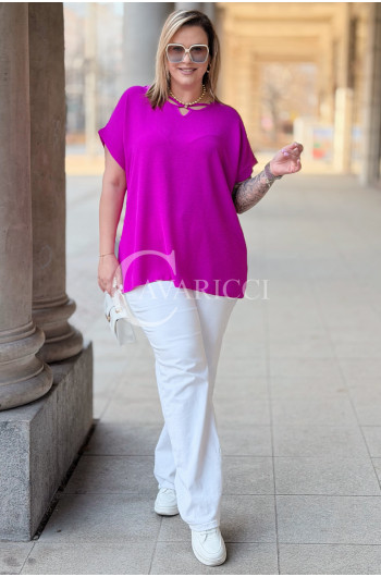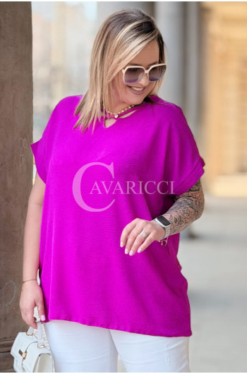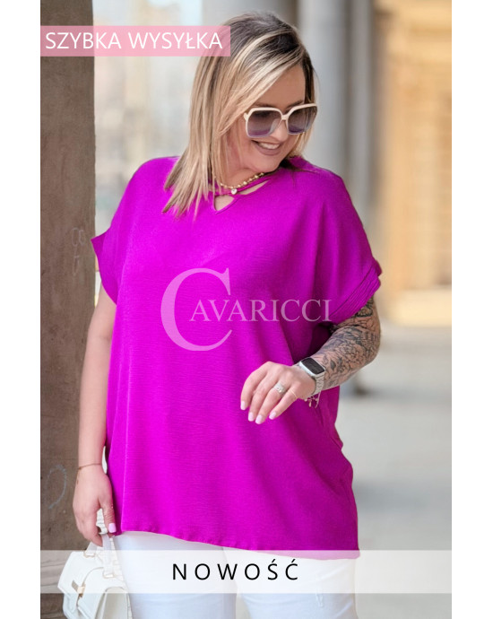 VANELLA - lekka bluzka z ozdobnym dekoltem w kolorze fuksji