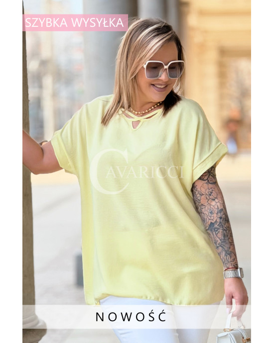 VANELLA - lekka bluzka z ozdobnym dekoltem w kolorze żółtym