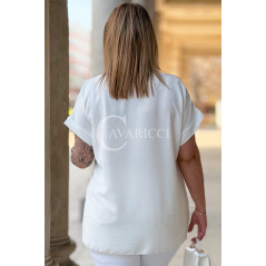 VANELLA - lekka bluzka z ozdobnym dekoltem w kolorze białym