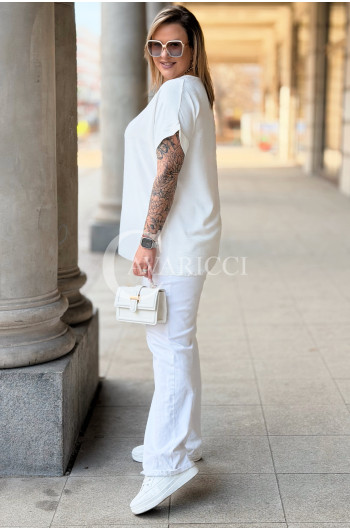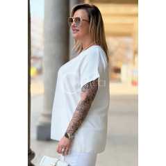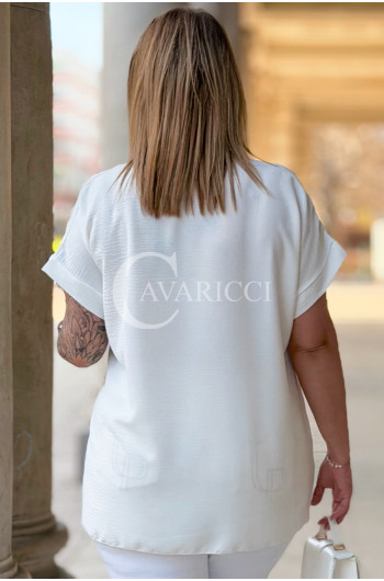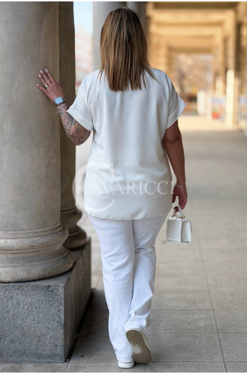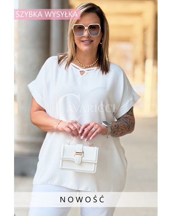 VANELLA - lekka bluzka z ozdobnym dekoltem w kolorze białym