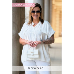 SOLEA - lekka koszula z krótkim rękawkiem i subtelną stójką w kolorze białym