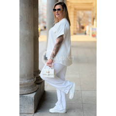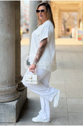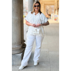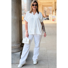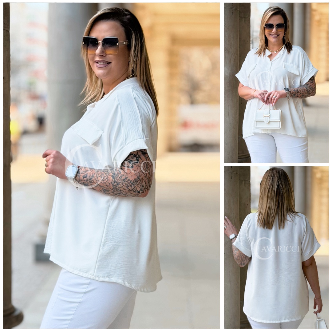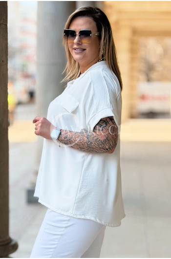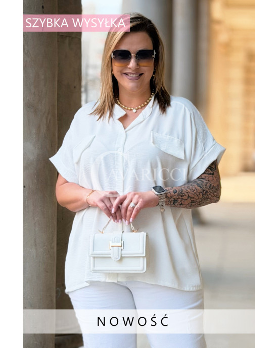 SOLEA - lekka koszula z krótkim rękawkiem i subtelną stójką w kolorze białym