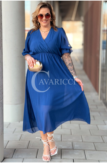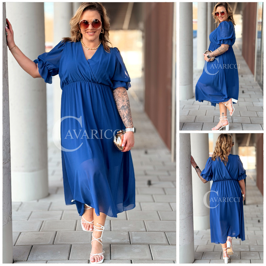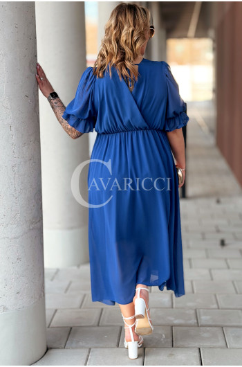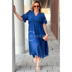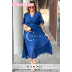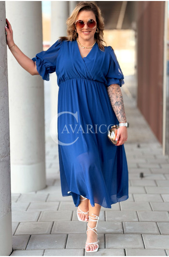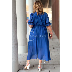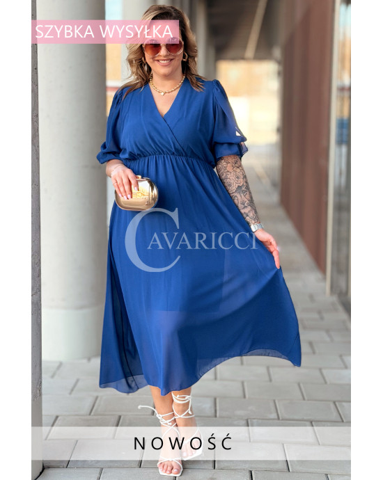 NOTTE - Elegancka szyfonowa sukienka z ozdobnym wiązaniem w kolorze chabrowym
