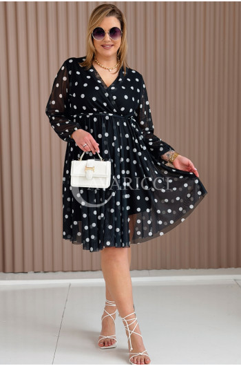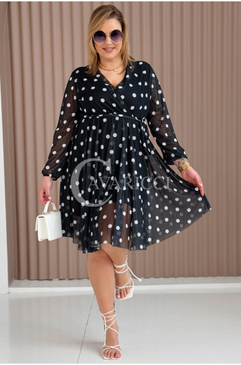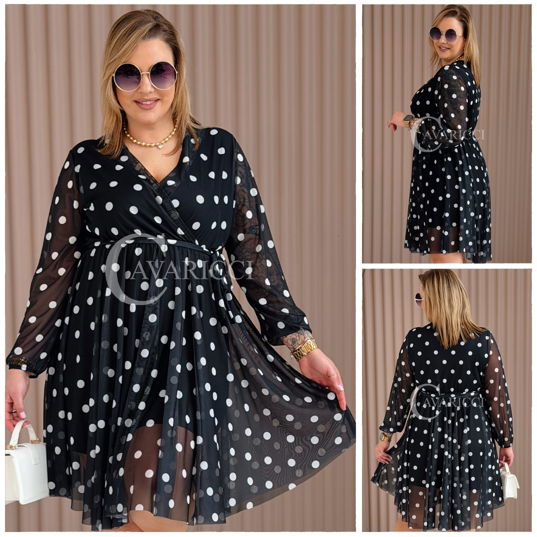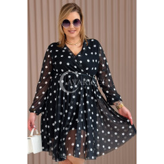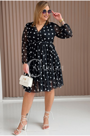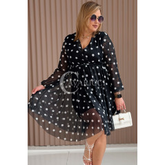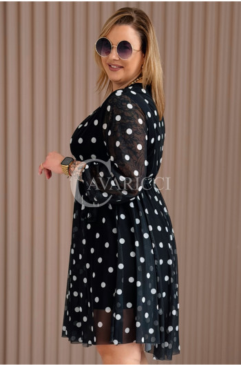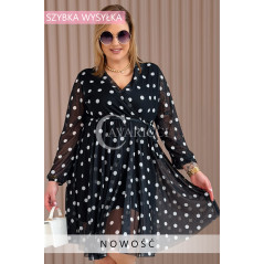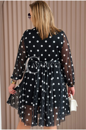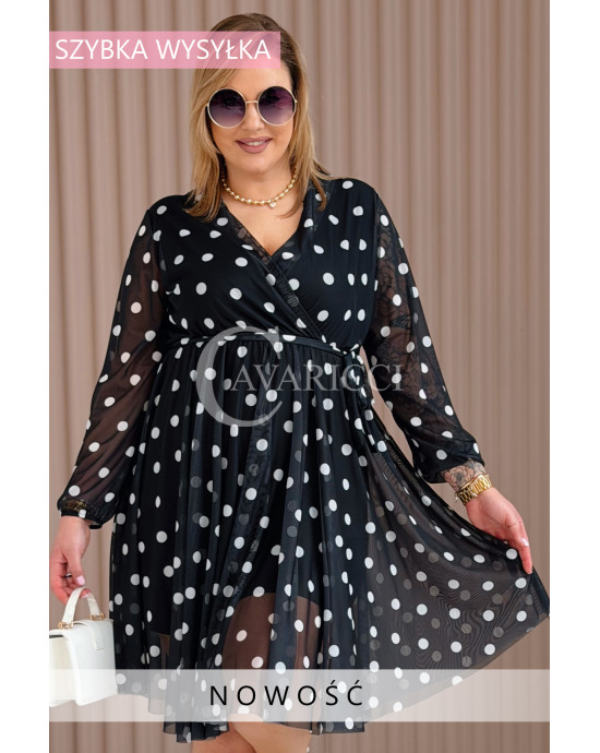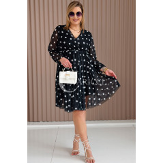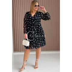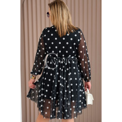 GAIA - Tiulowa sukienka w groszki z ozdobnym paskiem w kolorze czarnym