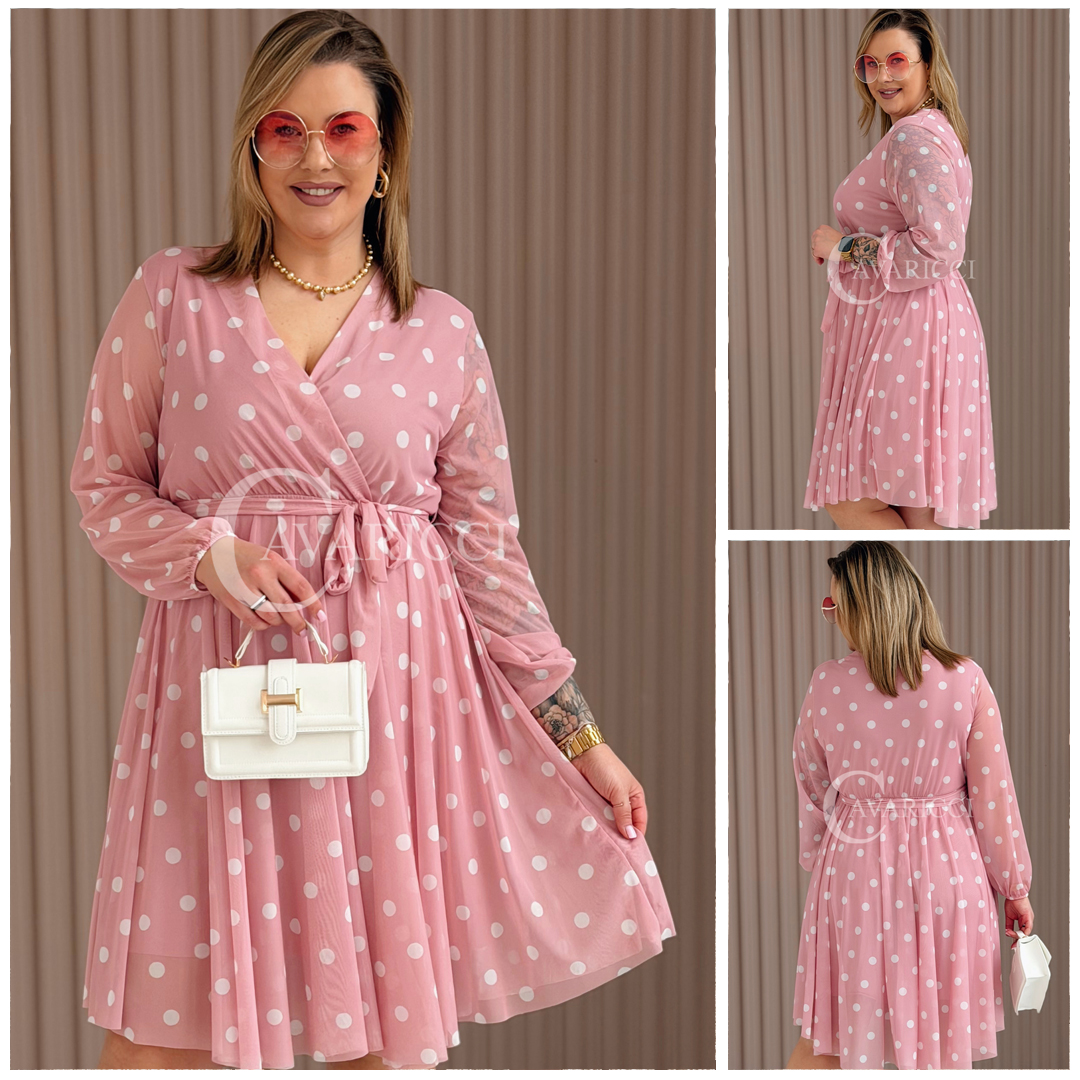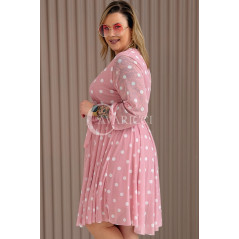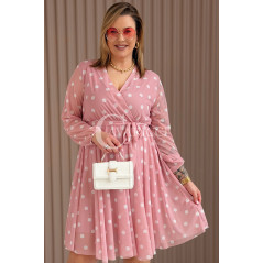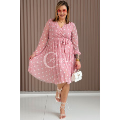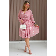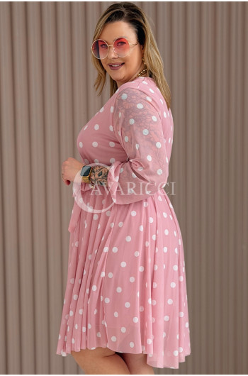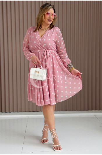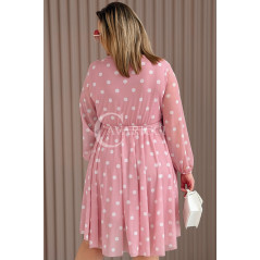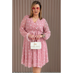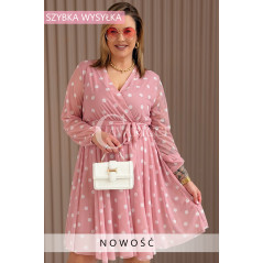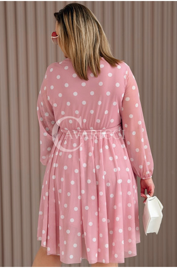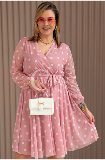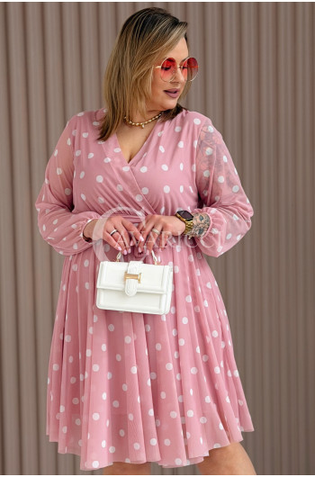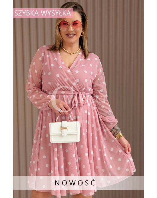 GAIA - Tiulowa sukienka w groszki z ozdobnym paskiem w kolorze pudrowego różu
