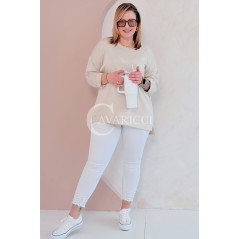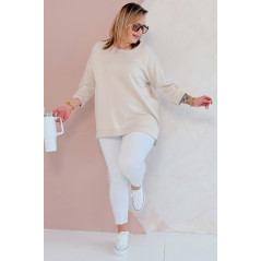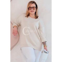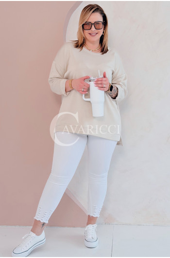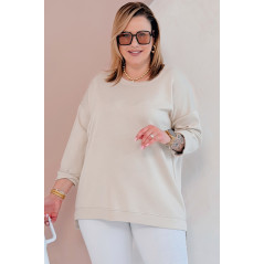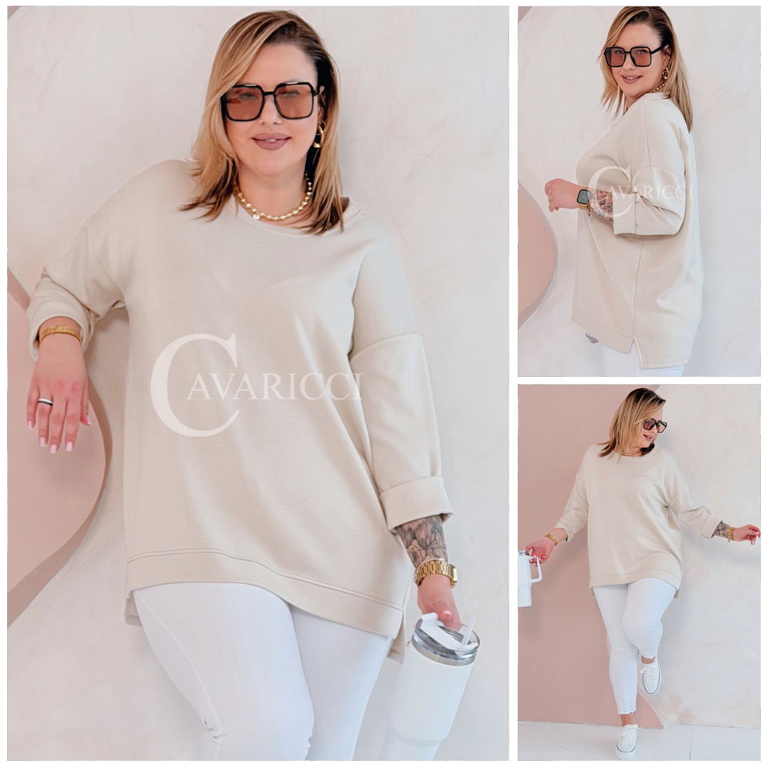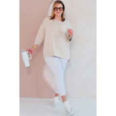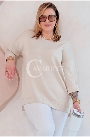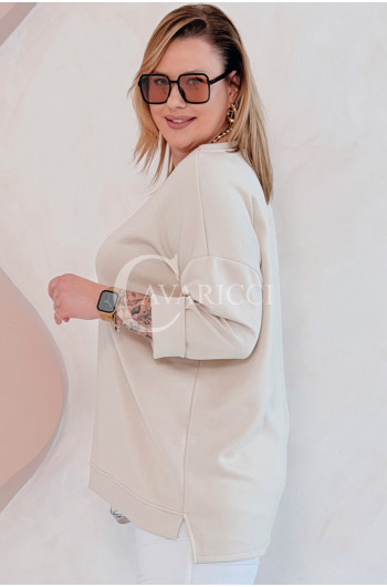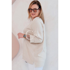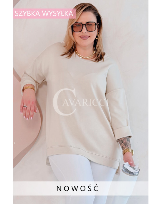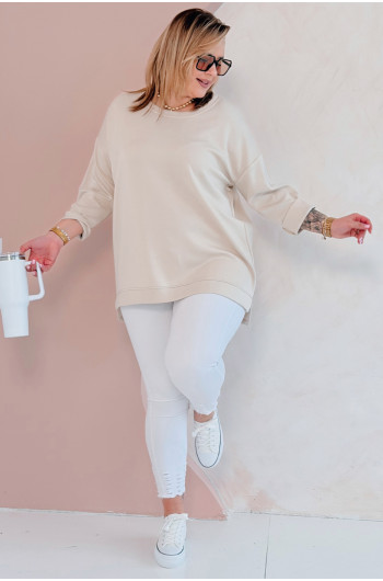 NOA - Klasyczna prosta bluza z delikatnym rozcięciem w kolorze beżowym