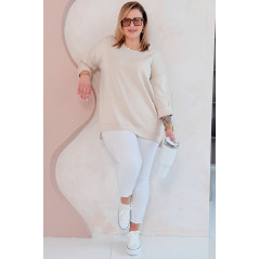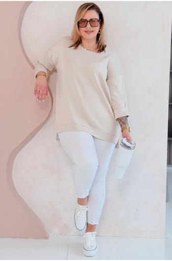NOA - Klasyczna prosta bluza z delikatnym rozcięciem w kolorze beżowym