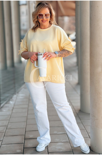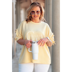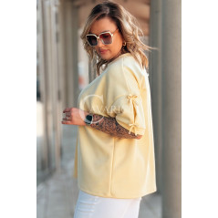 LIA - Klasyczna prosta bluzka z kokardkami na rękawie w kolorze bananowym