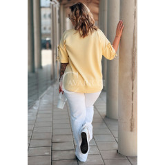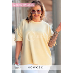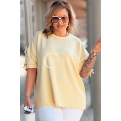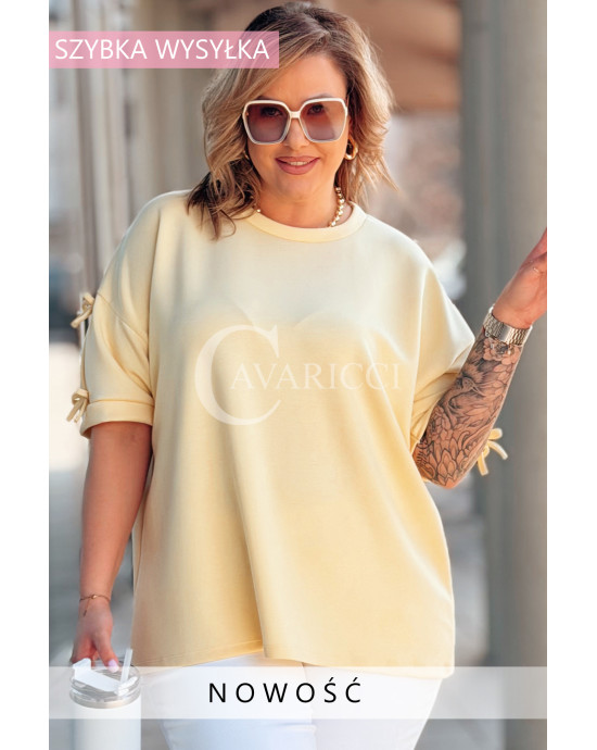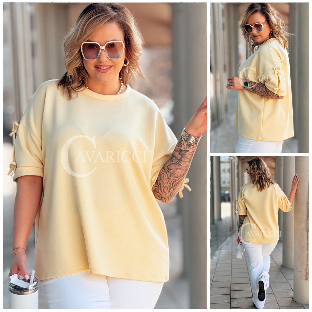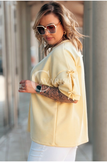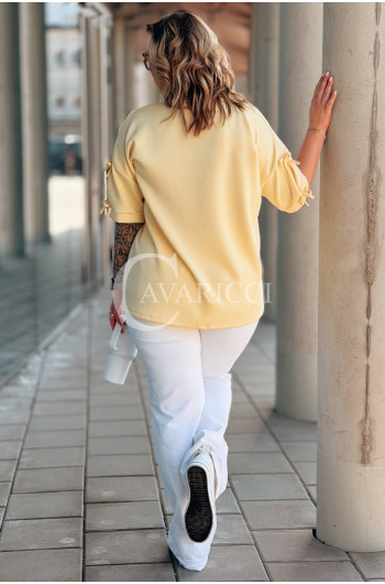 LIA - Klasyczna prosta bluzka z kokardkami na rękawie w kolorze bananowym