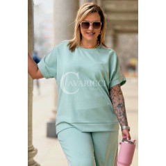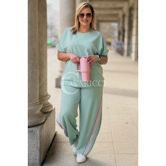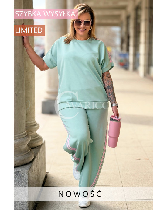 NINA - Stylowy komplet dresowy z ozdobnymi paskami w kolorze seledynowym