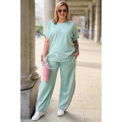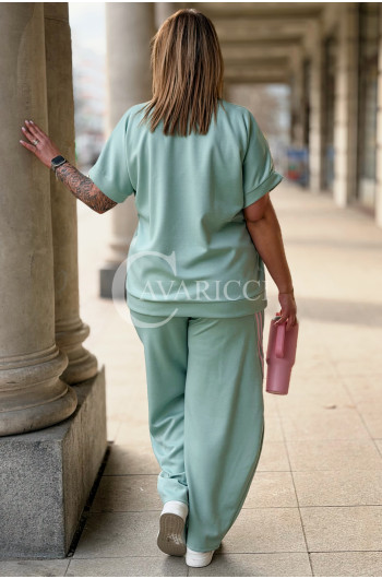 NINA - Stylowy komplet dresowy z ozdobnymi paskami w kolorze seledynowym