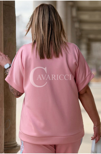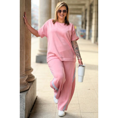 NINA - Stylowy komplet dresowy z ozdobnymi paskami w kolorze różowym