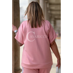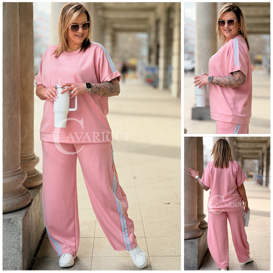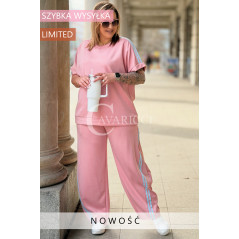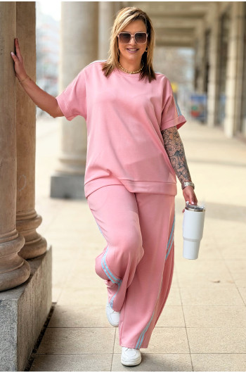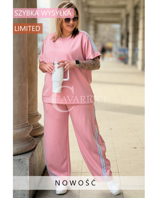 NINA - Stylowy komplet dresowy z ozdobnymi paskami w kolorze różowym
