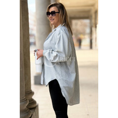 LUMI - Szykowna elegancka koszula z cekinami w paski w kolorze khaki