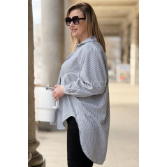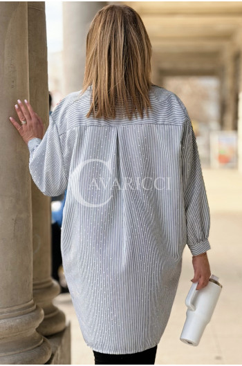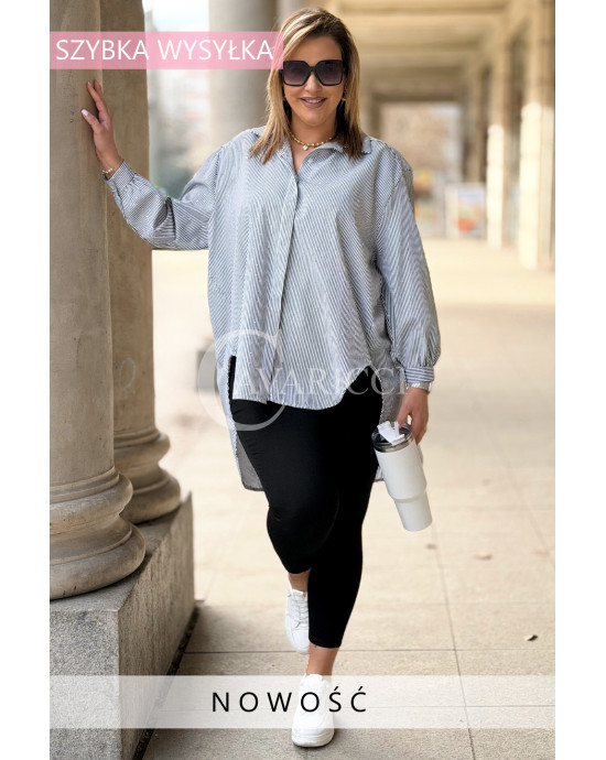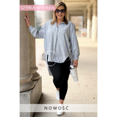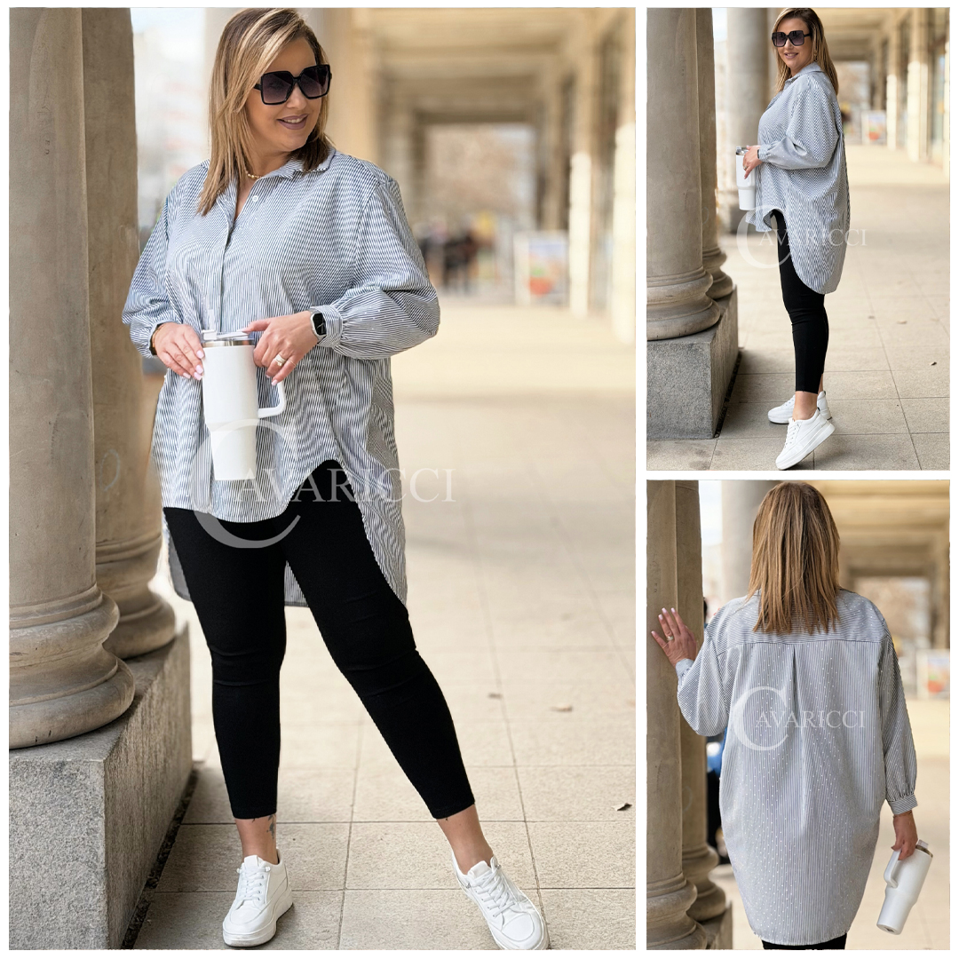 LUMI - Szykowna elegancka koszula z cekinami w paski w kolorze czarnym