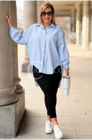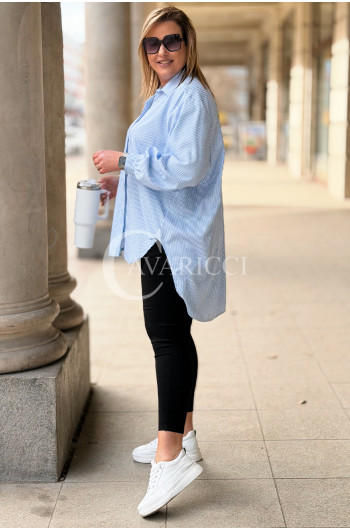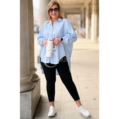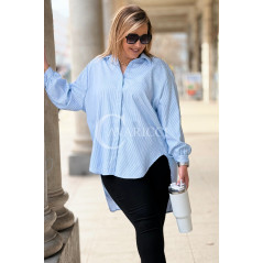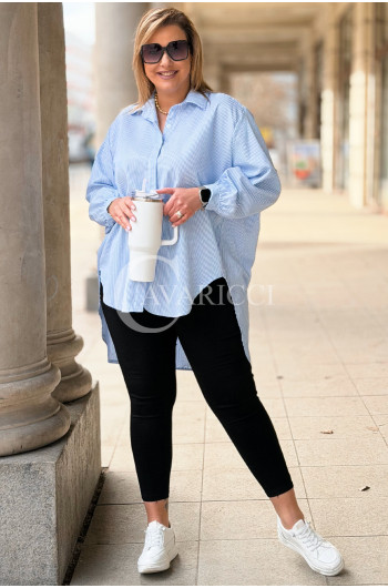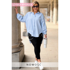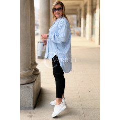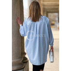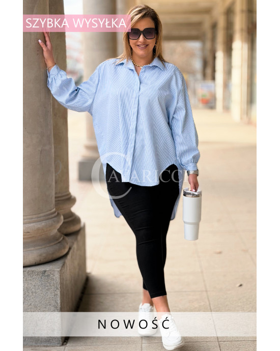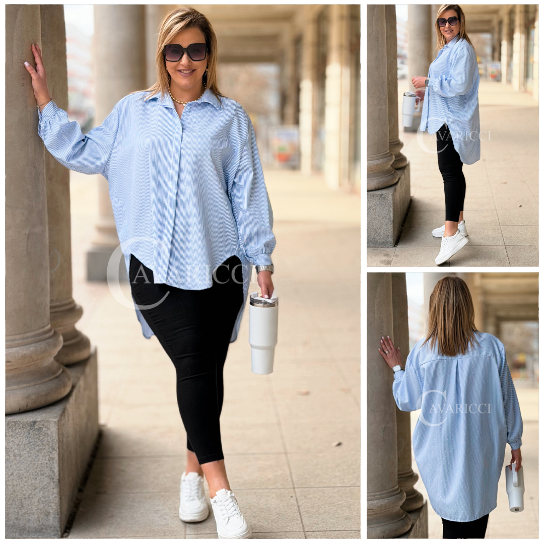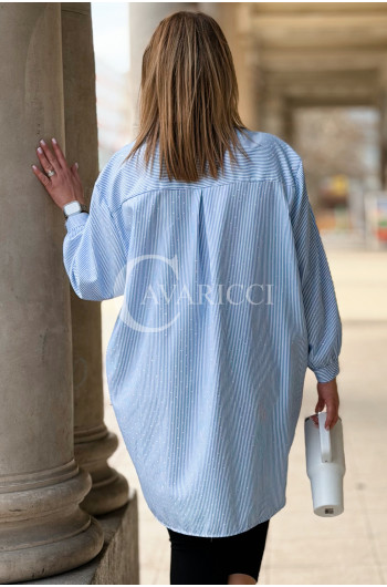 LUMI - Szykowna elegancka koszula z cekinami w paski w kolorze niebieskim