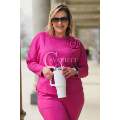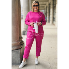 ROSALIA - Komplet dresowy z ozdobną różą w kolorze fuksji