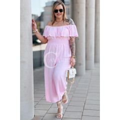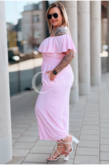 CALIENTE - zmysłowy sukienko-kombinezon w stylu hiszpanki w kolorze pudrowego różu