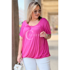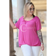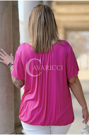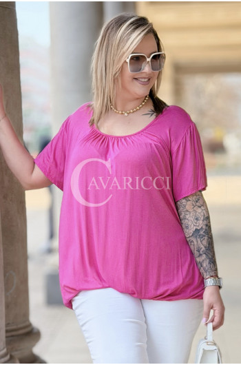 BARACHIONA - Prosta basicowa bluzka z gumeczką w kolorze fuksji