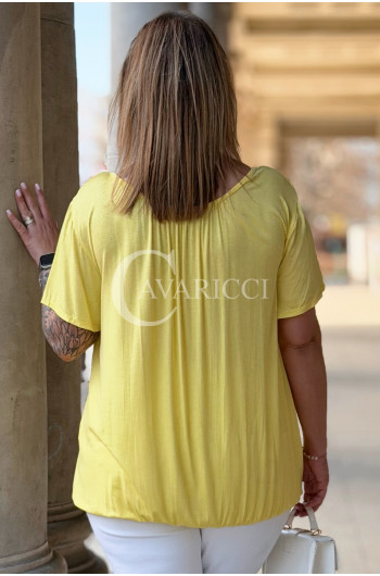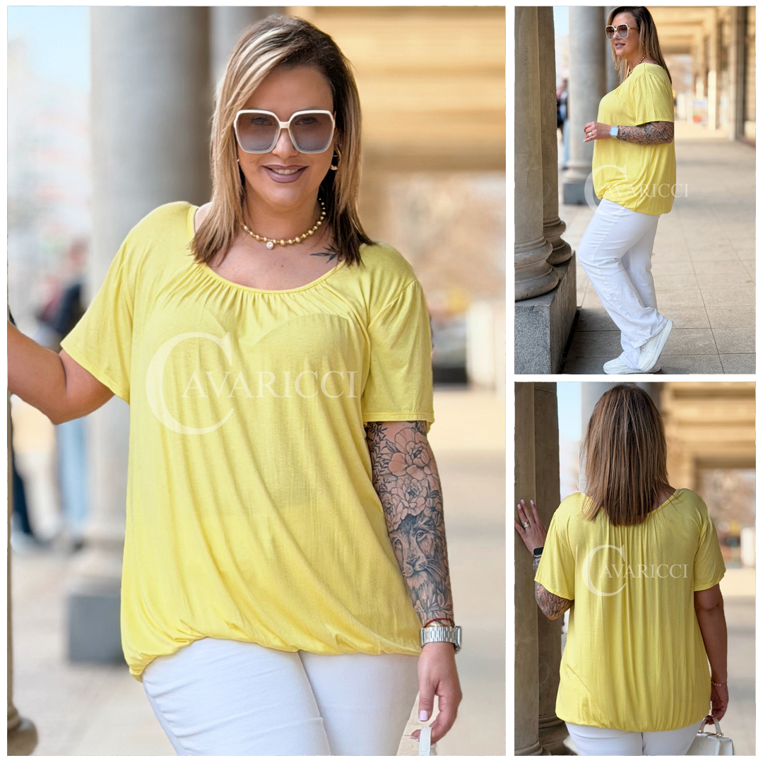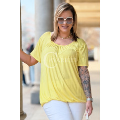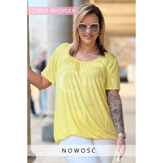 BARACHIONA - Prosta basicowa bluzka z gumeczką w kolorze żółtym