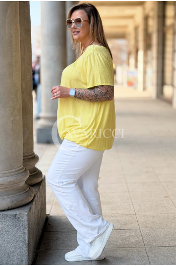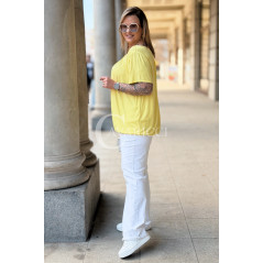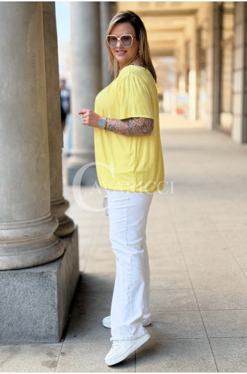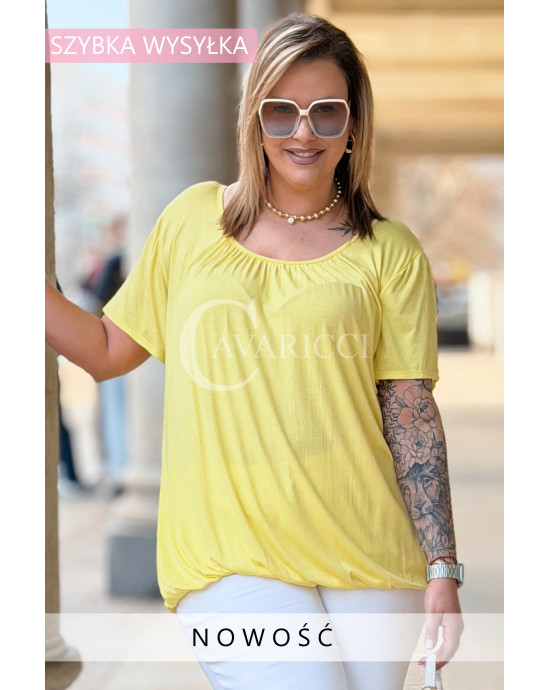 BARACHIONA - Prosta basicowa bluzka z gumeczką w kolorze żółtym