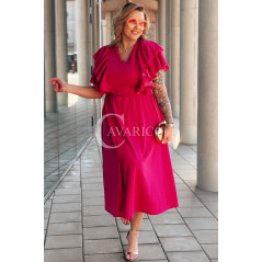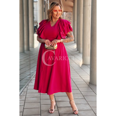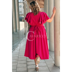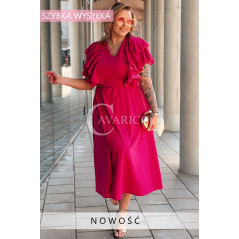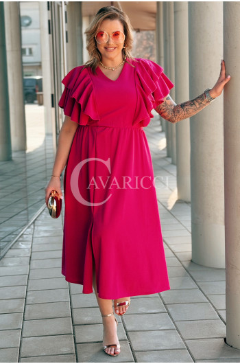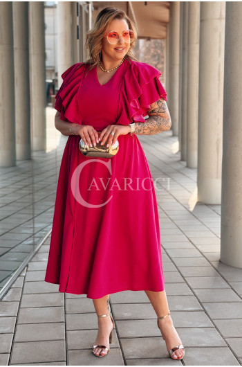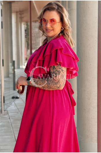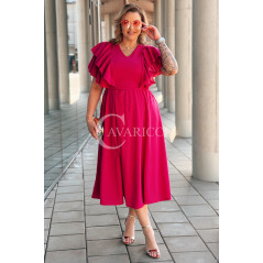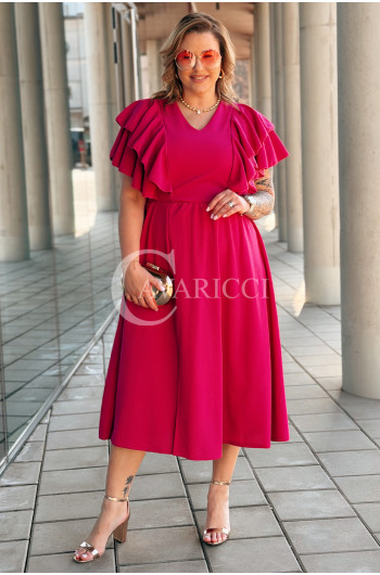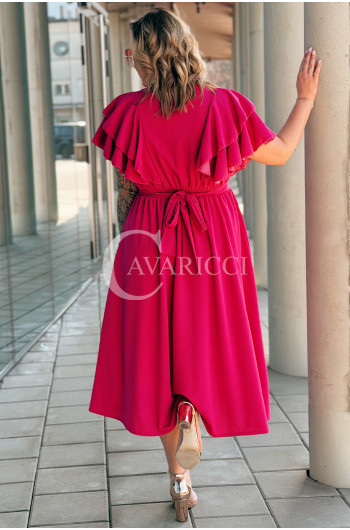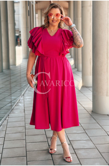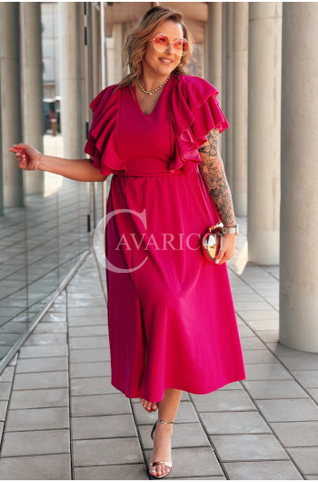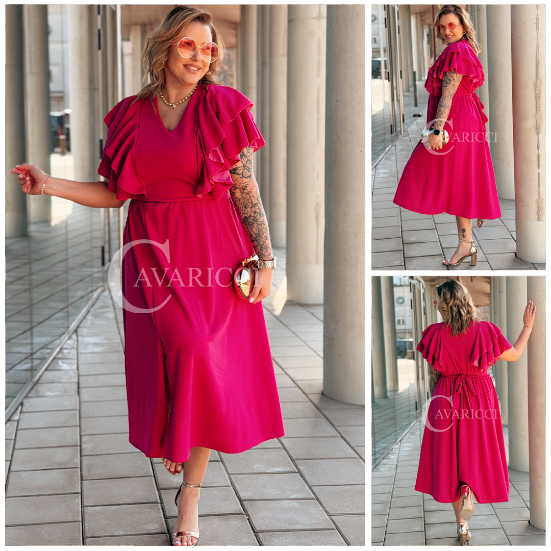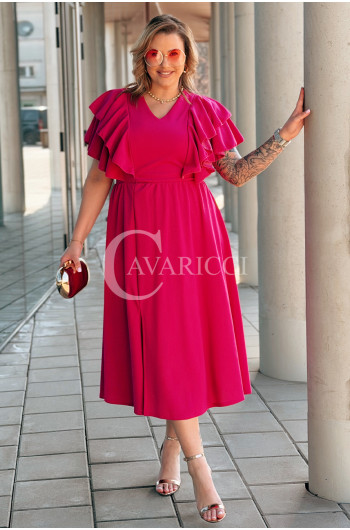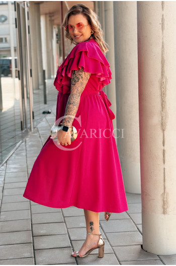 AURELIA – sukienka elegancka w romantycznym wydaniu z falbankami w kolorze fuksji
