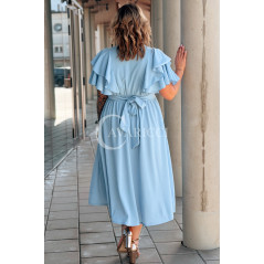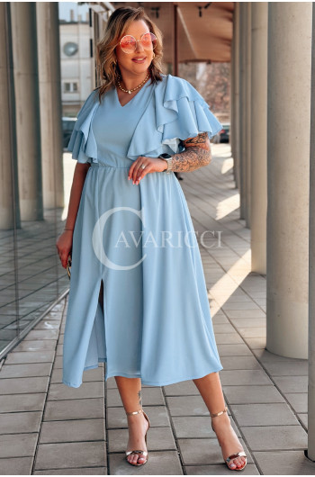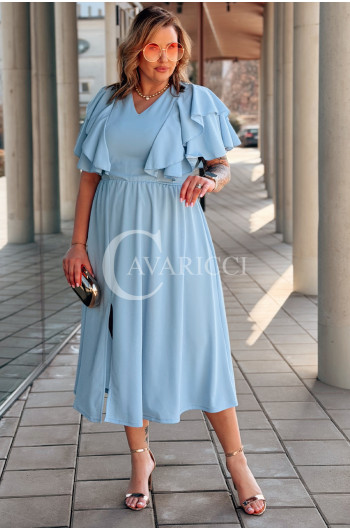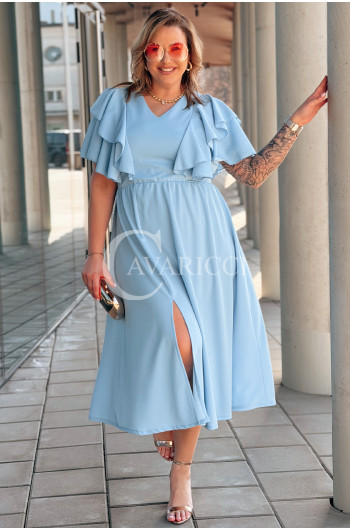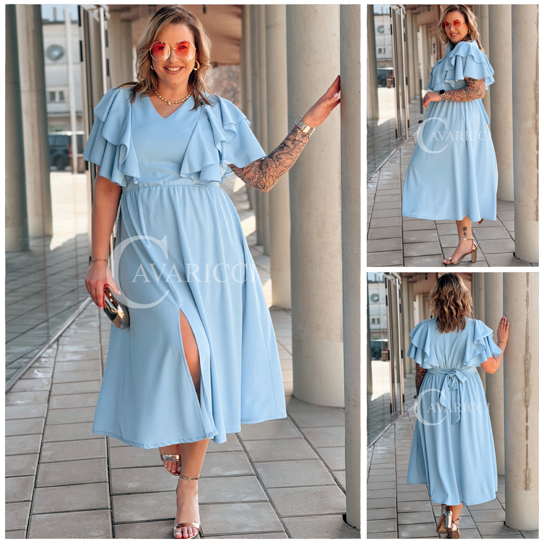 AURELIA – sukienka elegancka w romantycznym wydaniu z falbankami w kolorze błękitnym
