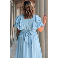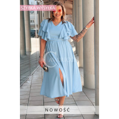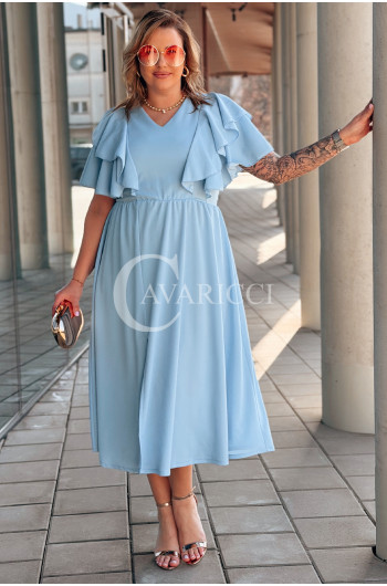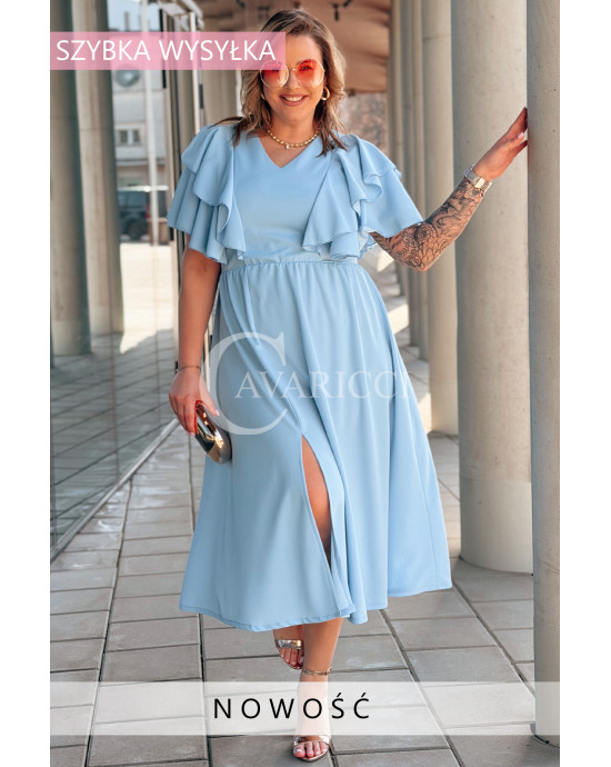 AURELIA – sukienka elegancka w romantycznym wydaniu z falbankami w kolorze błękitnym