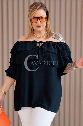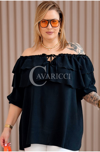 HALIA - Romantyczna hiszpanka z falbankami w kolorze czarnym