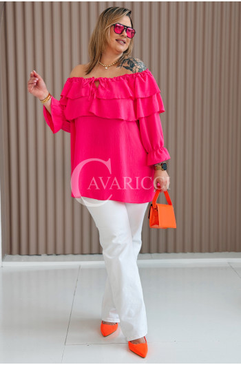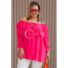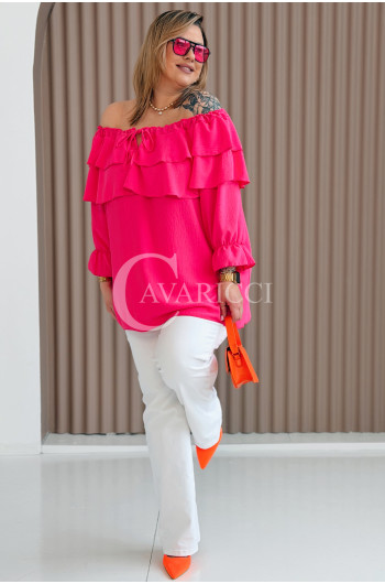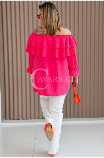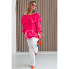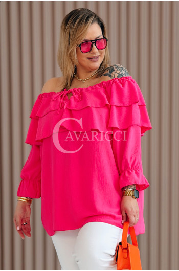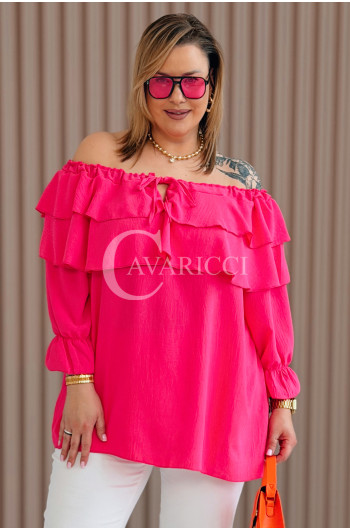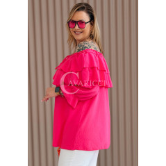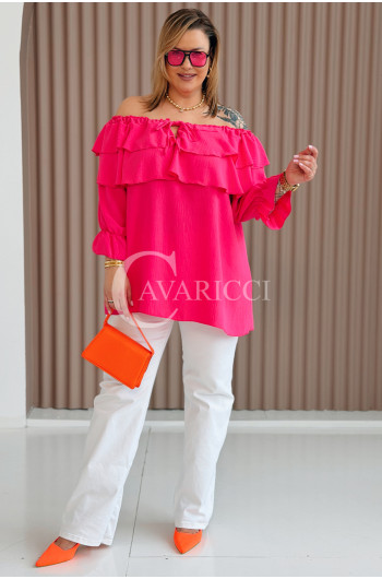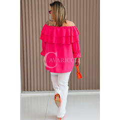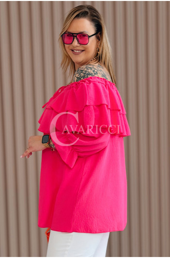 HALIA - Romantyczna hiszpanka z falbankami w kolorze fuksji