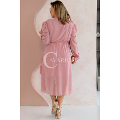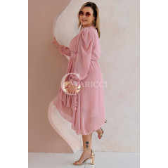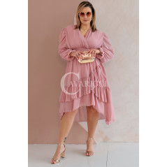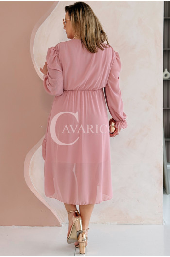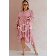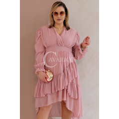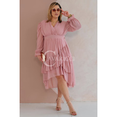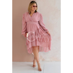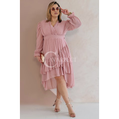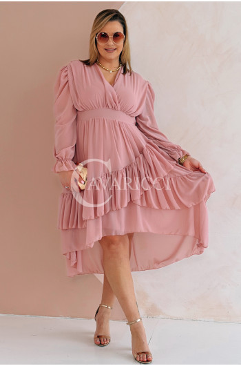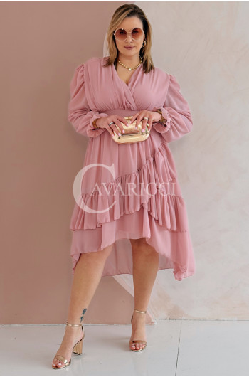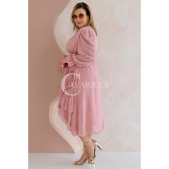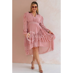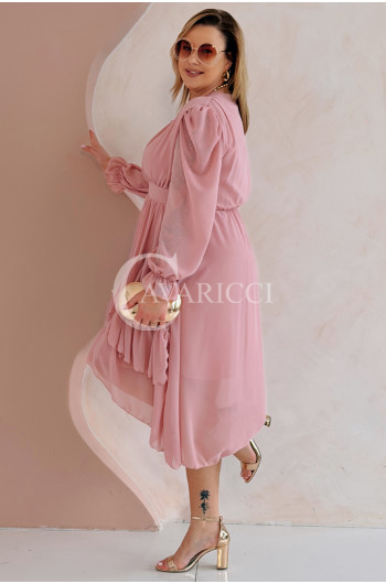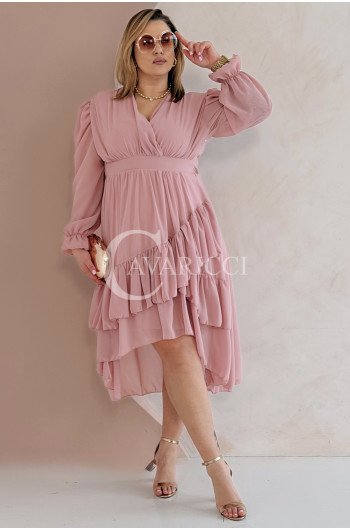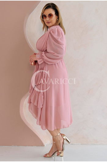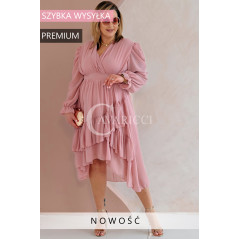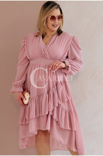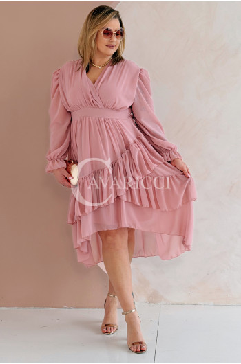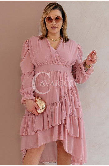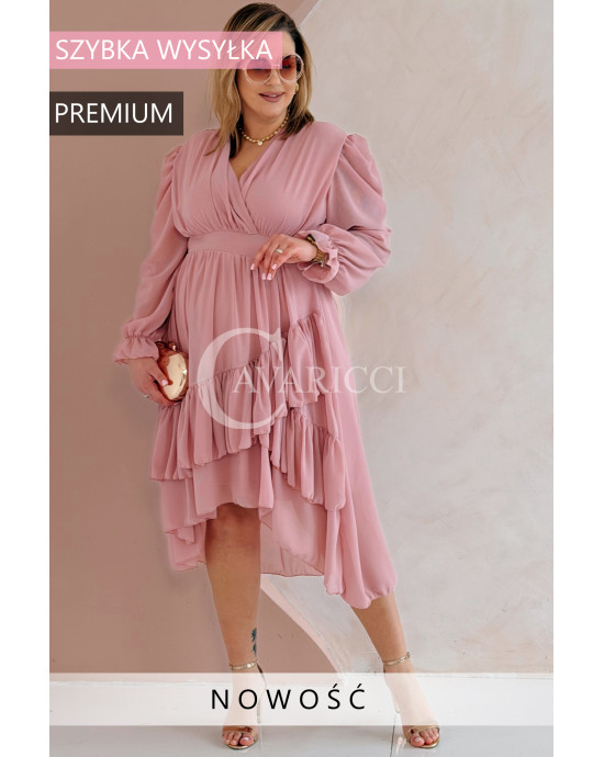 VIOLA - zwiewna elegancka z romantycznymi falbankami w kolorze pudrowego różu