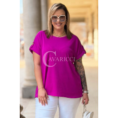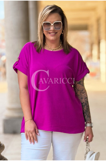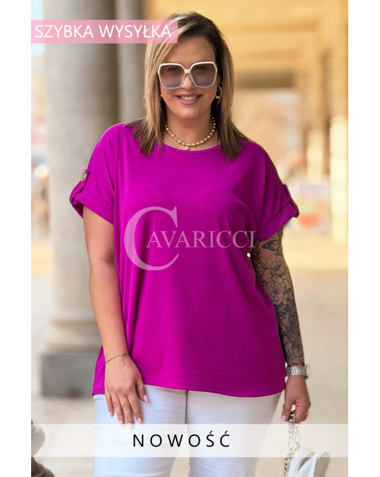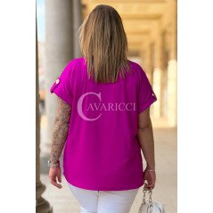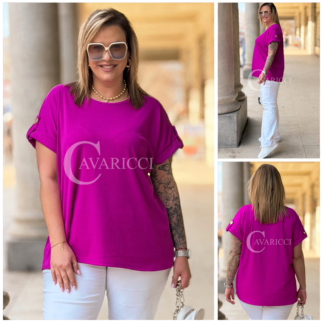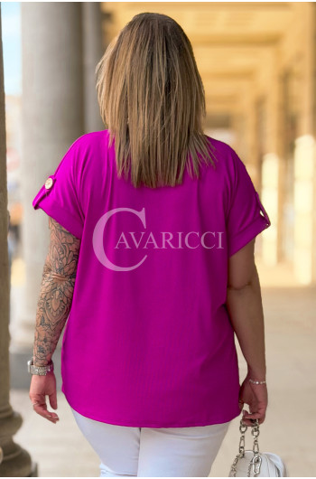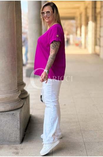PALMA - Bluzka z prążkowanego materiału z ozdobnymi guzikami w kolorze fuksji