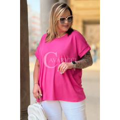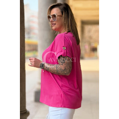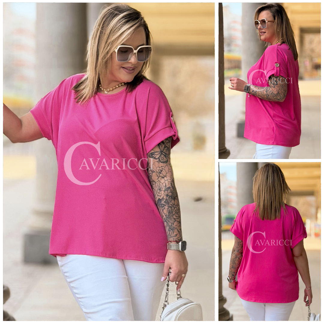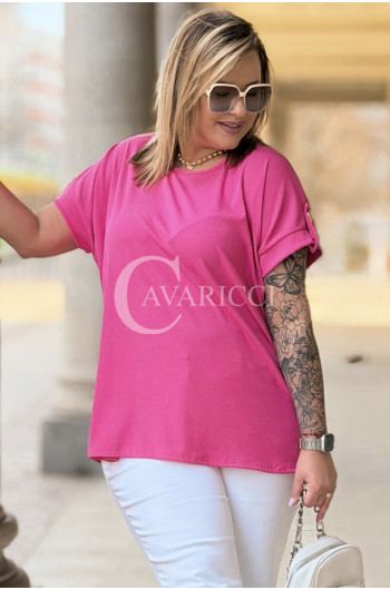PALMA - Bluzka z prążkowanego materiału z ozdobnymi guzikami w kolorze landrynkowym