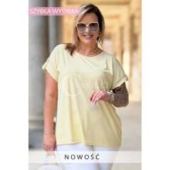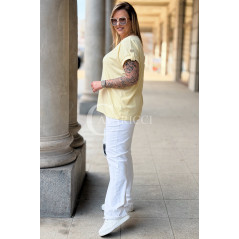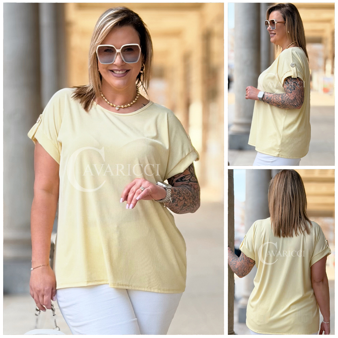 PALMA - Bluzka z prążkowanego materiału z ozdobnymi guzikami w kolorze żółtym