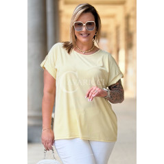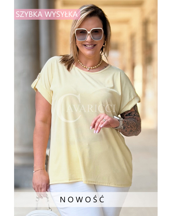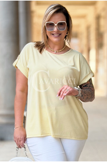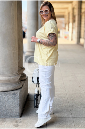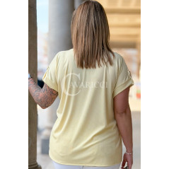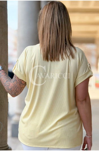 PALMA - Bluzka z prążkowanego materiału z ozdobnymi guzikami w kolorze żółtym