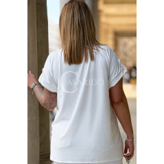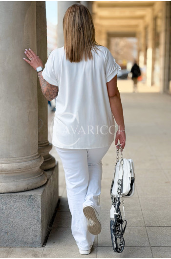 PALMA - Bluzka z prążkowanego materiału z ozdobnymi guzikami w kolorze białym