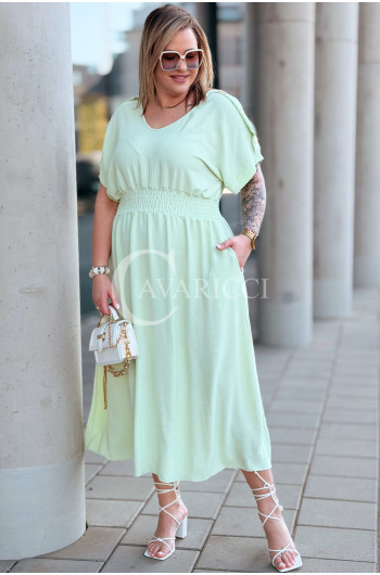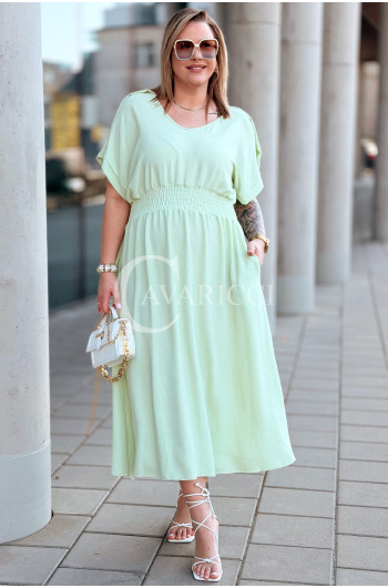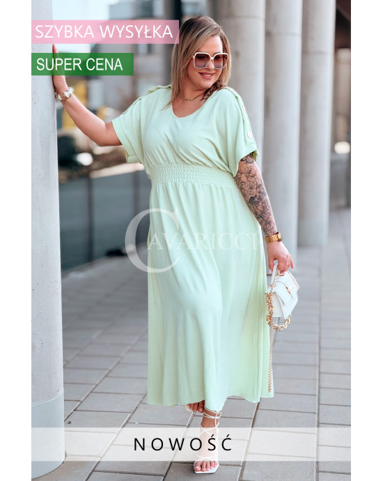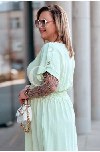 SORENTO - Zwiewna sukienka maxi z ozdobnymi guziczkami w kolorze pistacjowym