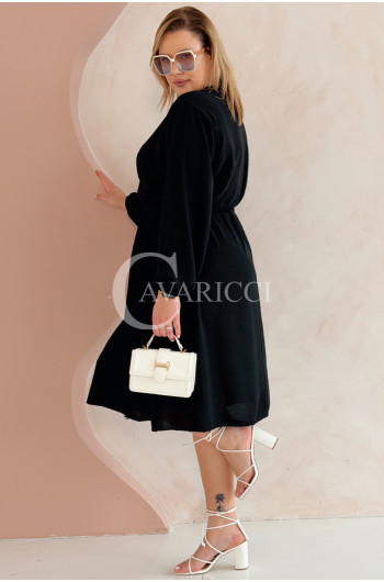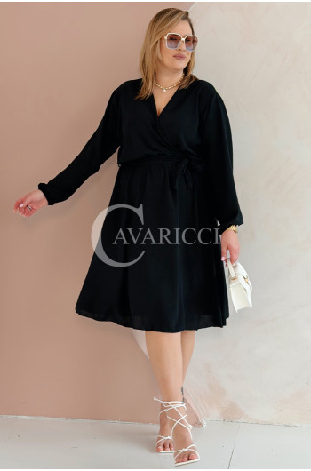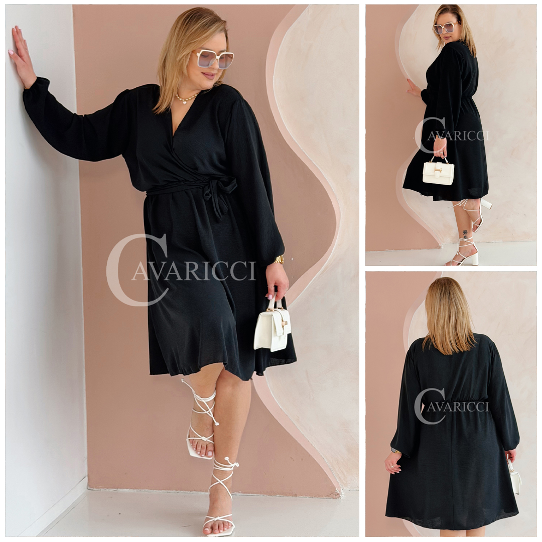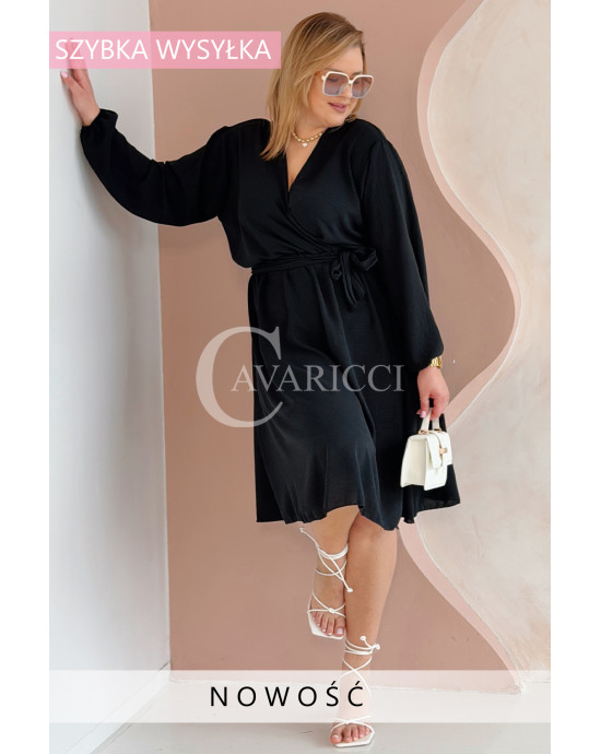 MATYLDA - Olśniewająca sukienka prosta z wiązaniem w pasie w kolorze czarnym