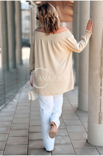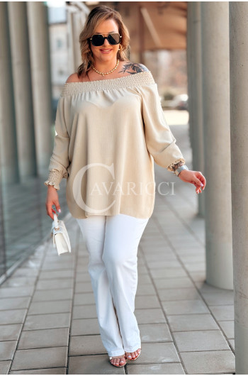 💎 Prosty, elegancki fason, który podkreśla ramiona i dekolt, dodając bluzce klasycznego, kobiecego charakteru