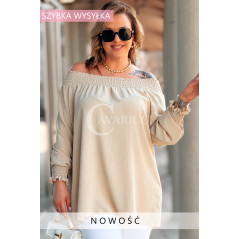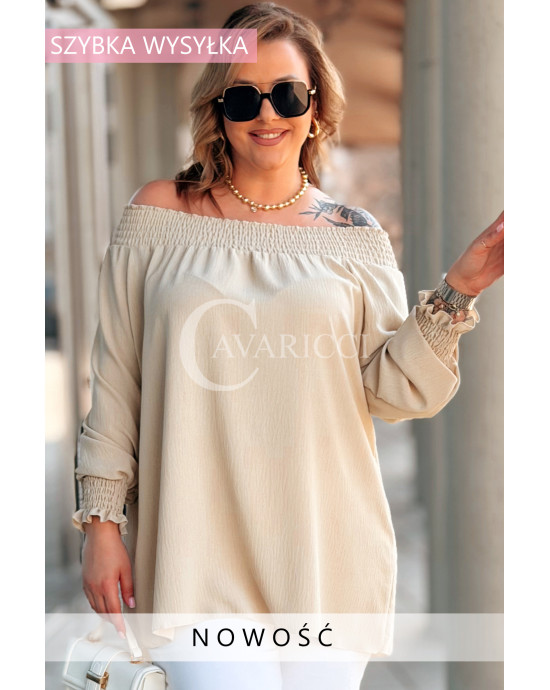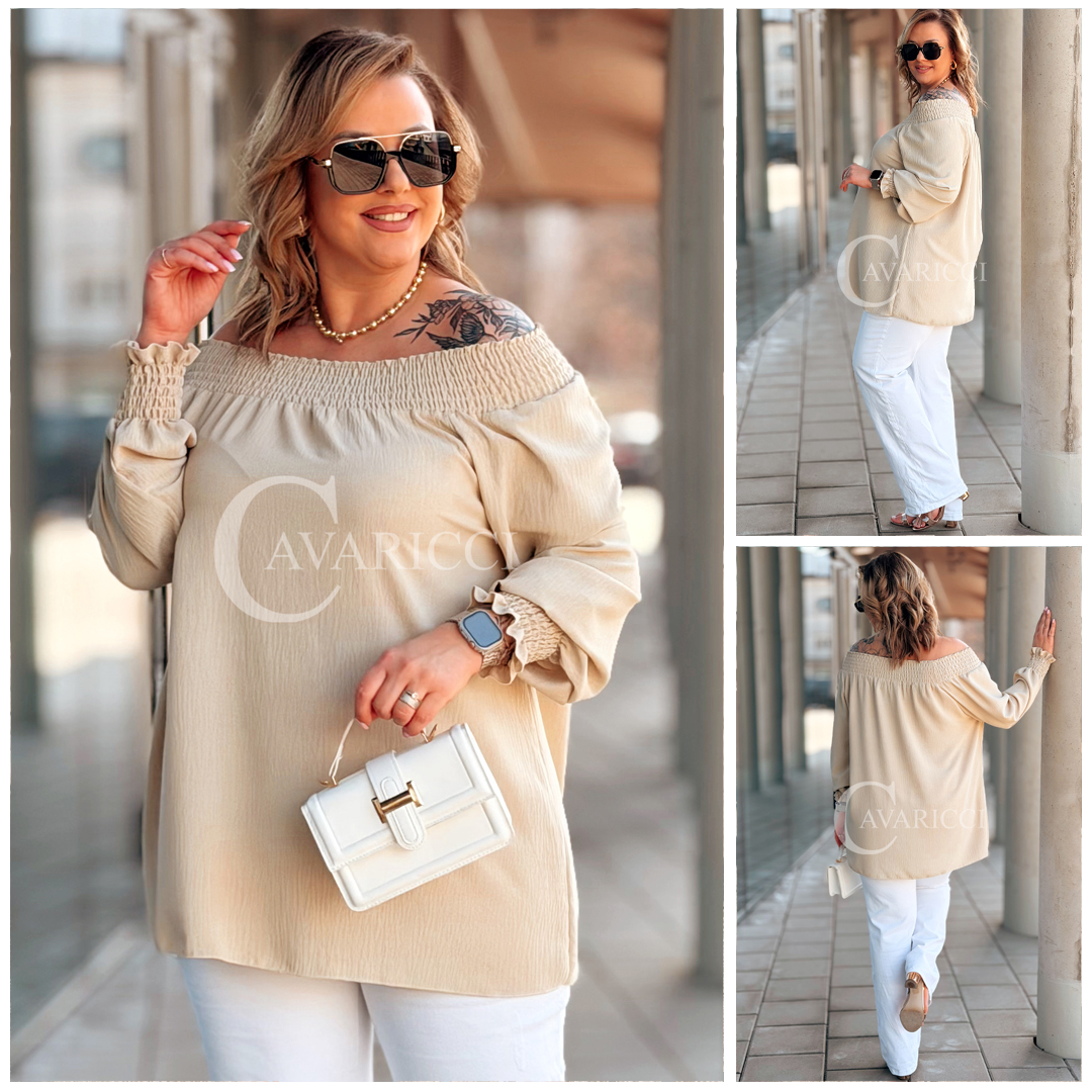 💎 Prosty, elegancki fason, który podkreśla ramiona i dekolt, dodając bluzce klasycznego, kobiecego charakteru