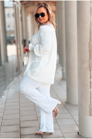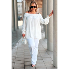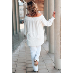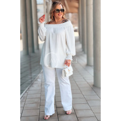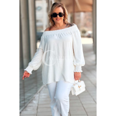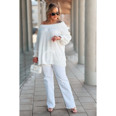 💎 Prosty, elegancki fason, który podkreśla ramiona i dekolt, dodając bluzce klasycznego, kobiecego charakteru