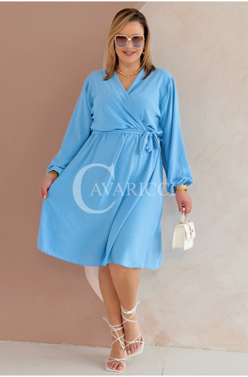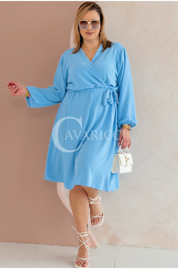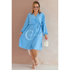 MATYLDA - Olśniewająca sukienka prosta z wiązaniem w pasie w kolorze błękitnym