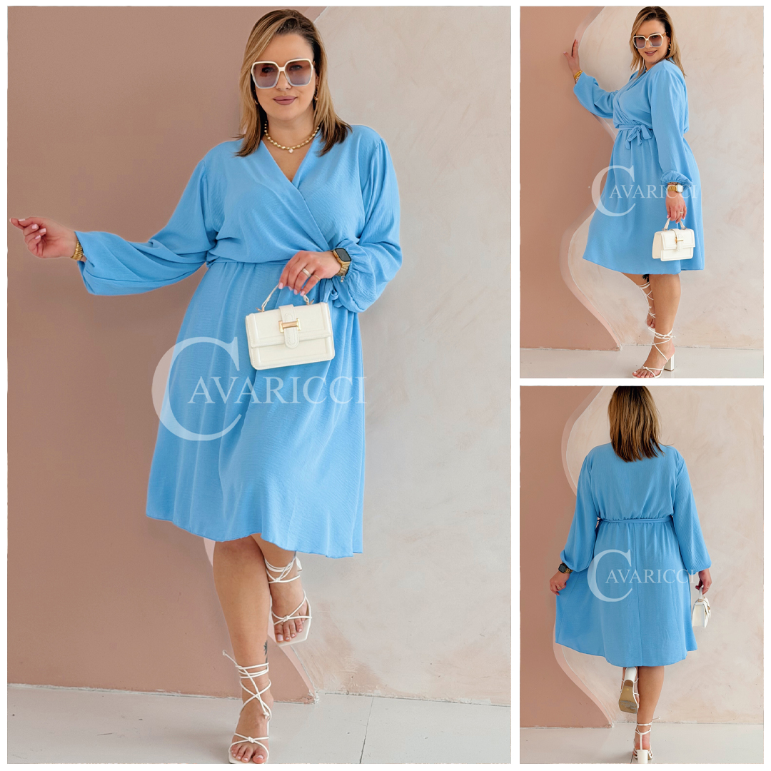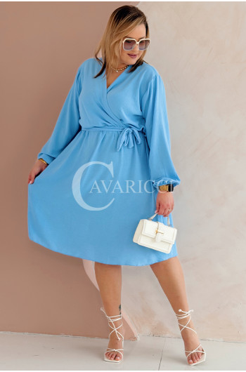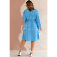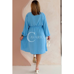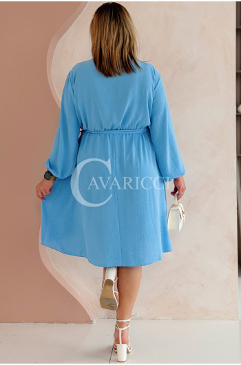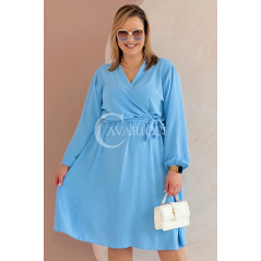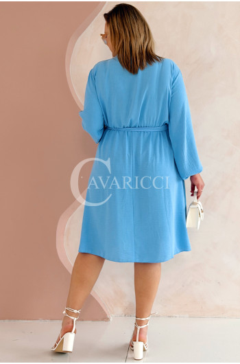 MATYLDA - Olśniewająca sukienka prosta z wiązaniem w pasie w kolorze błękitnym