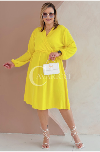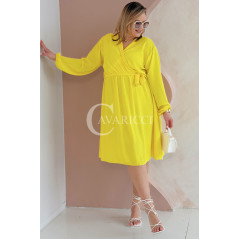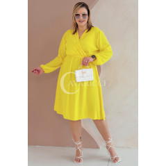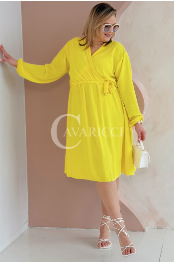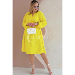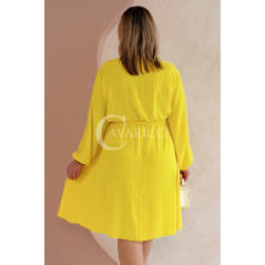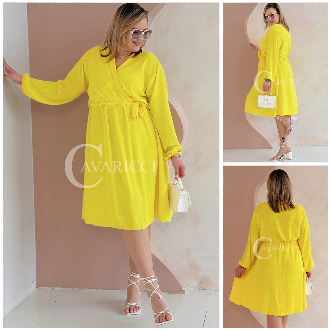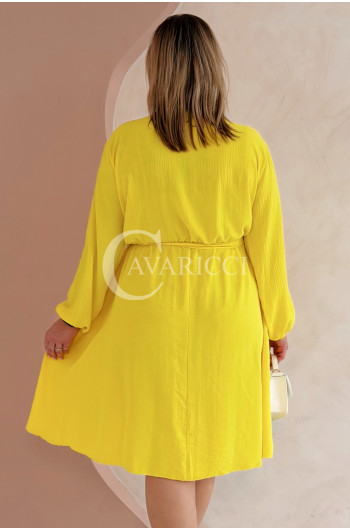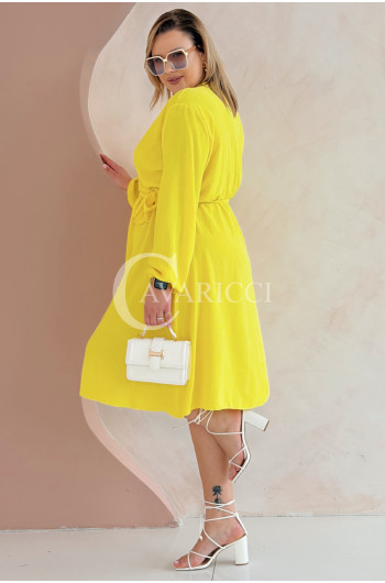 MATYLDA - Olśniewająca sukienka prosta z wiązaniem w pasie w kolorze żółtym