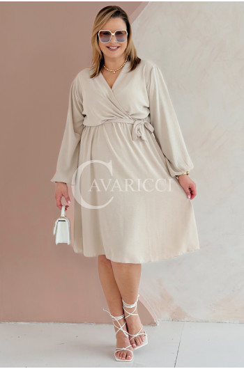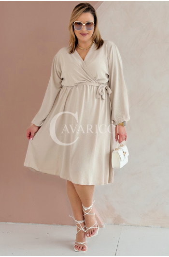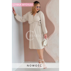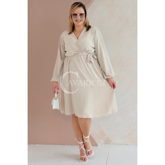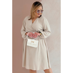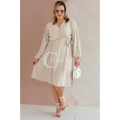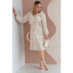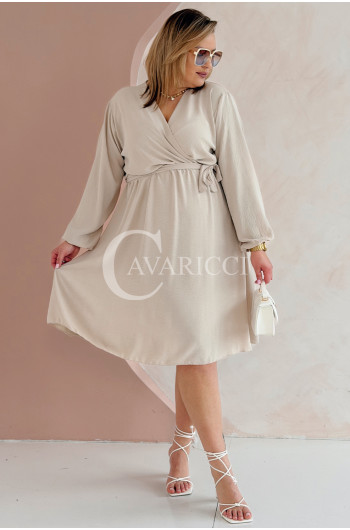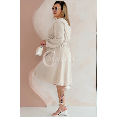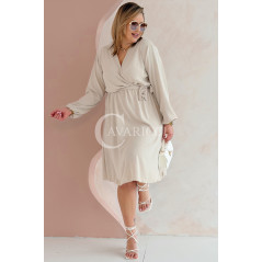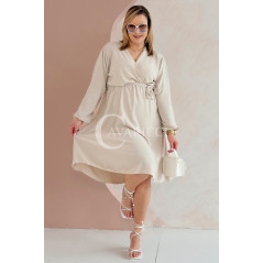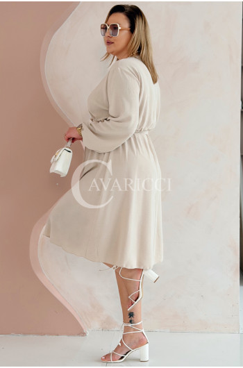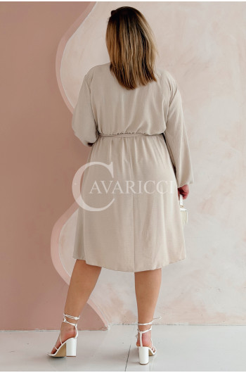 MATYLDA - Olśniewająca sukienka prosta z wiązaniem w pasie w kolorze beżowym