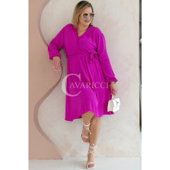 MATYLDA - Olśniewająca sukienka prosta z wiązaniem w pasie w kolorze fuksji