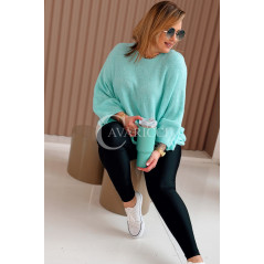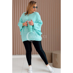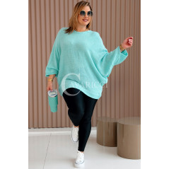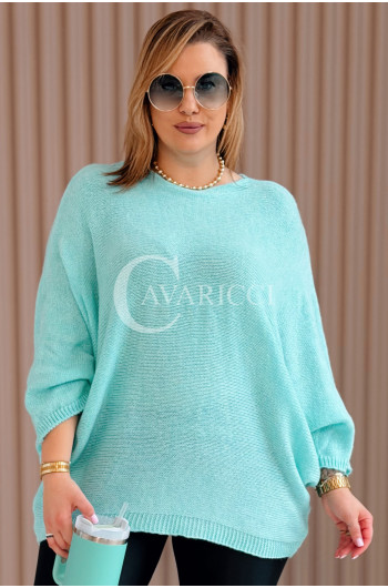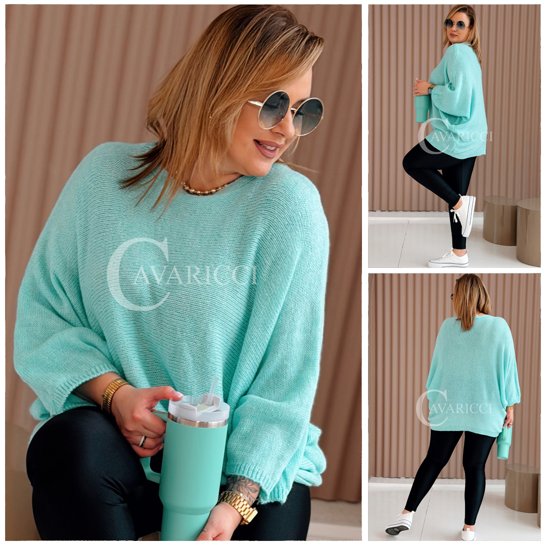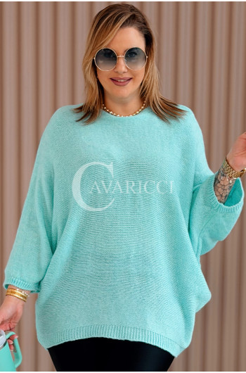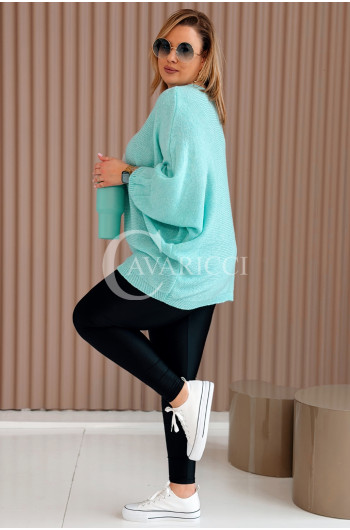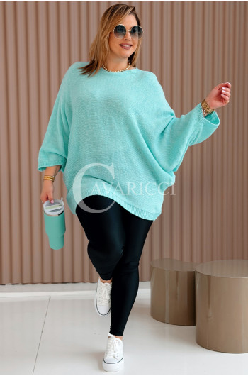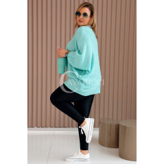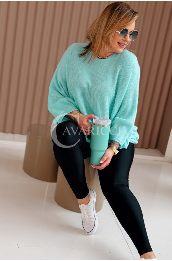 LIANA - Klasyczny, prosty sweterek o kroju nietoperza w kolorze miętowym