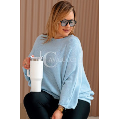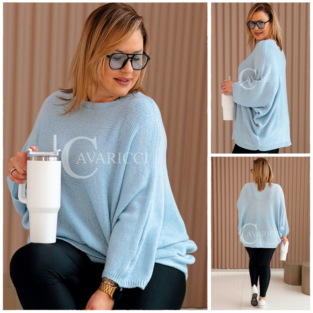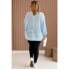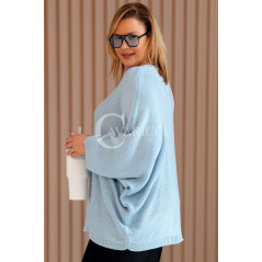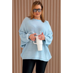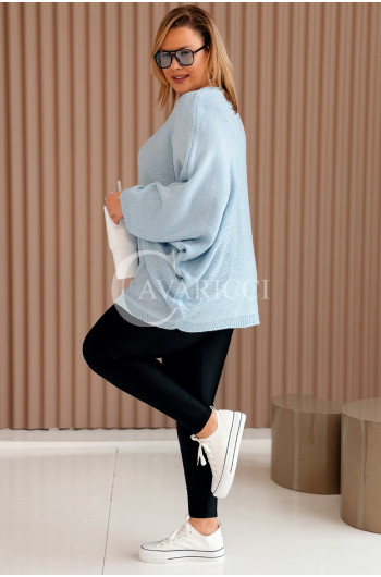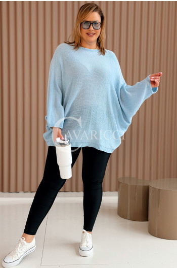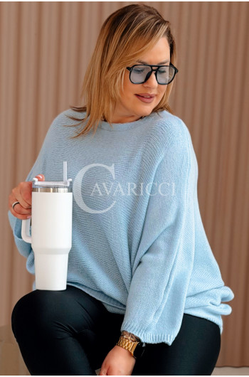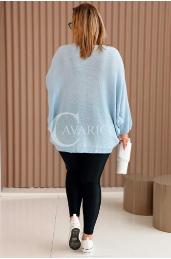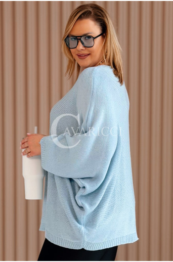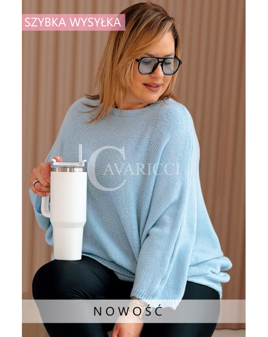 LIANA - Klasyczny, prosty sweterek o kroju nietoperza w kolorze błękitnym